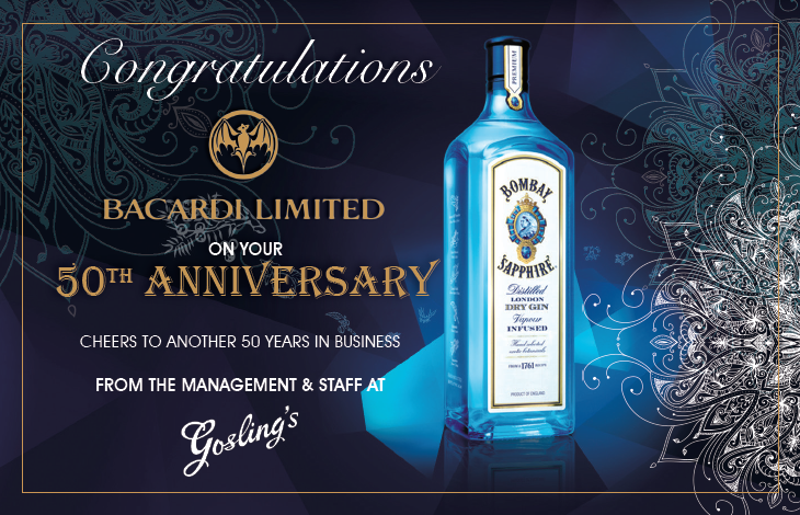 Congratulatory Advertisement (Gosling’s Bermuda for Bacardi 50th Anniversary)
